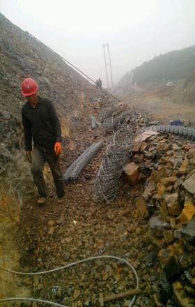 ③灌漿完成28小時(shí)內,不得敲擊和碰撞邊坡防護網(wǎng)錨桿。