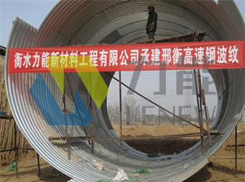衡水力能新材料工程有限公司有幸拿下衡水市桃城區路段,為邢衡高速公路衡水路段提供直徑6米6mm厚的拼裝波紋涵管 24.6米,現在安裝階段已接近尾聲。